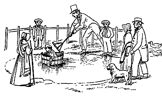 A local tutor was hired to continue James' education, but this was completely unsatisfactory. The tutor tried unsuccessfully to obtain his pupil's attention and obedience through various physical forms of coercion. We may surmise that the harassment was not all one way. A drawing by James' cousin Jemima Wedderburn shows James paddling his floating washtub across the pond away from an unflatteringly portrayed tutor, who is vainly trying to catch him.